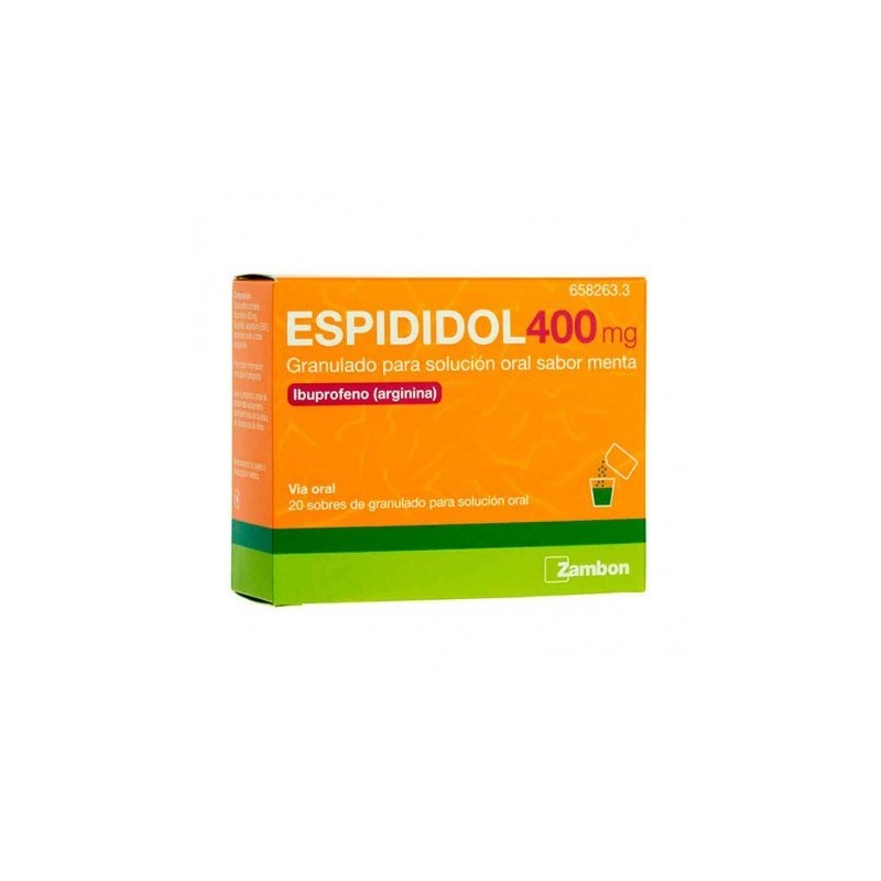 Ibuprofeno Espididol Granulado Sabor Menta 400mg 20 Sobres es el analgésico ideal para tomar cuando se tienen los dolores ocasionales leves a moderados y estados febriles.